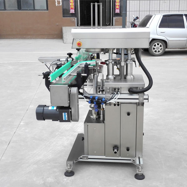 在線式真空旋蓋機是一款廣泛于各種日化品、醫藥、化妝品、食品、化工行業真空旋蓋設備。如:辣椒醬,腐乳,花生醬、芝麻醬、果醬、干果等等需要真空保鮮產品。辣椒醬真空旋蓋生產線集自動理瓶、上蓋、蒸汽噴射、自動真空旋蓋于一體,具有無瓶不送蓋,卡瓶、缺蓋自動停機報警等功能,自動化程度高,操作容易,在線式真空旋蓋機主要部件采用日本進口,性能穩定可靠,更換不同規格的瓶子、蓋子調整方便,機器采用自動下蓋方式,無需過多人工參與,自動下蓋抽真空旋蓋,整機灌裝包裝流程一氣呵成。辣椒醬真空旋蓋生產線具有真空抽空的功能,其旋蓋封口后的產品,能有效的延長其在正常環境下的保質期限,不易出現物品與外界空氣等發生氧化而變質。